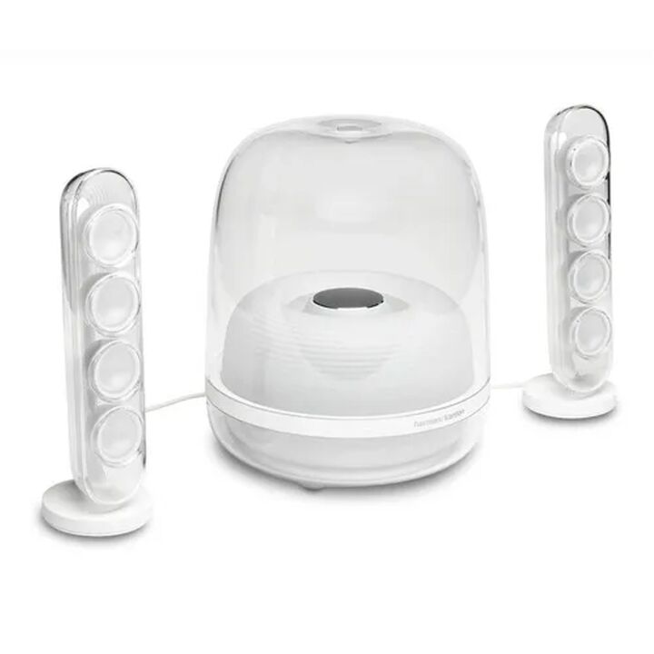 Los Harman Kardon SoundSticks 4 destacan en cualquier hogar contemporáneo. Su innovador diseño de cúpula transparente y su elegante silueta se integran a la perfección con la decoración. Los dos altavoces satélite y la cubierta del subwoofer lucen espectaculares con una superficie interior ondulada ...