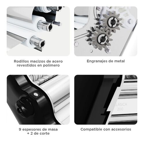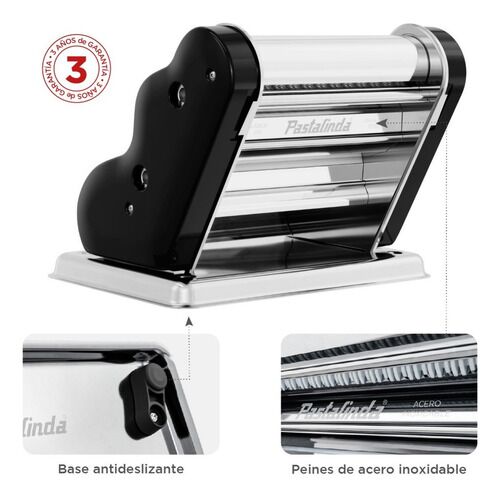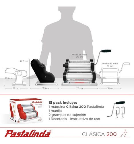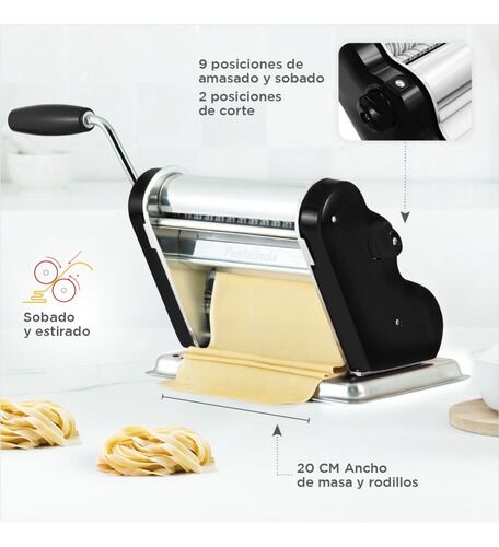 PASTALINDA CLÁSICA 200 NEGRO Máquina elaboradora de Pasta Casera. Fácil de usar y con un diseño único y personalizado que te permitirá preparar mayor cantidad de pasta en menos tiempo, gracias a sus 20cm de ancho de masa Amasa y estira todo tipo de pasta, desde deliciosos tallarines y espaguetis has...