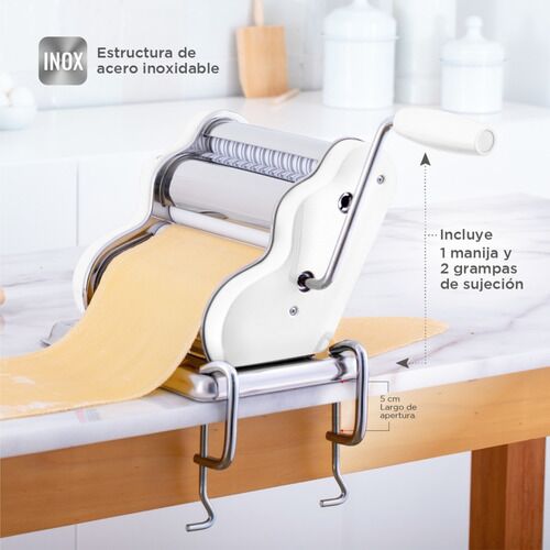 PASTALINDA CLÁSICA 200 BLANCA Máquina elaboradora de Pasta Casera. Fácil de usar y con un diseño único y personalizado que te permitirá preparar mayor cantidad de pasta en menos tiempo, gracias a sus 20cm de ancho de masa Amasa y estira todo tipo de pasta, desde deliciosos tallarines y espaguetis ha...