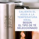 CUATRO TEMPERATURAS PREDEFINIDAS Panel de control fácil de usar con ajustes de temperatura predefinidas ideales para tés verdes, blancos, negros, oolong y mate. YA NO NECESITAS CALENTAR EL AGUA UNA Y OTRA VEZ La función “mantener caliente” de tu hervidor eléctrico ayuda a mantener el agua a la tempe...