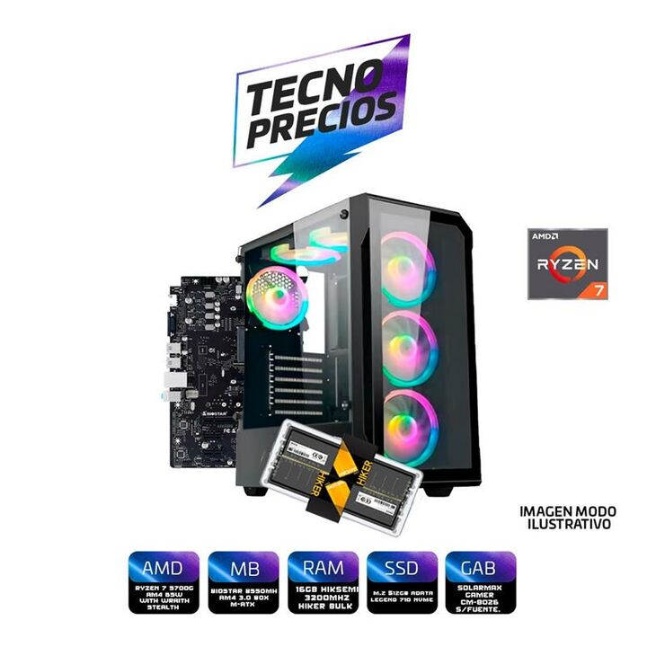 Rendimiento profesional en un formato compacto. Con el potente AMD Ryzen 7 5700G y componentes seleccionados según disponibilidad, esta PC está pensada para creadores de contenido, tareas exigentes, multitarea fluida y gaming sin placa dedicada. L...