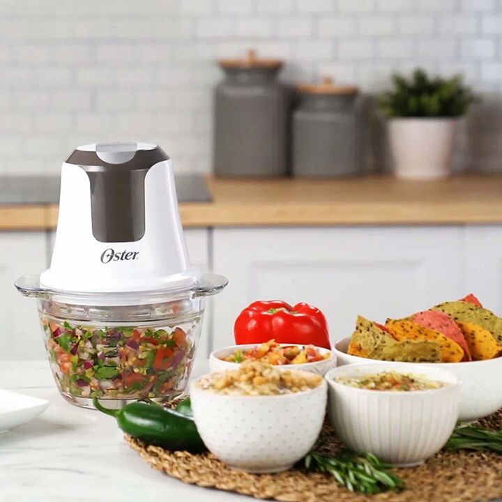 PERFECTA PARA HACER TUS DIPS FAVORITOS Prepara tus alimentos más rápido con la mini picadora Oster® con tazón de vidrio. Agrégala a tu equipo de cocina, para que te ayude a picar, desmenuzar y moler con eficiencia. Después de probarla, difícilmente usarás un cuchillo otra vez. PARA PICAR, DESMENUZAR...