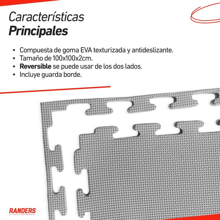 Piso Goma Yoga Encastrable Gris|Negro 100x100x2cm Randers