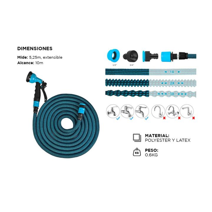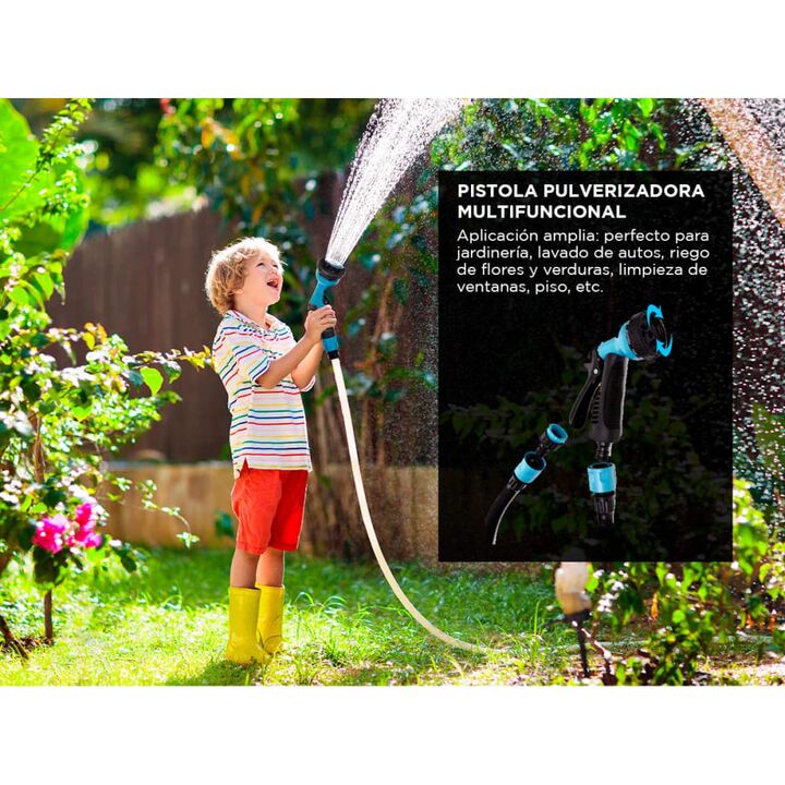 ¡Nueva Manguera Expansible y Pistola de riego Gadnic! Fabricada con tela de poliéster de alta calidad, látex y latón macizo, la manguera de jardín retráctil es segura y duradera de usar. Especificaciones Material: Polyester, Latex Peso: 0.6 kg Modos de la Pistola: 8 modos Alcance: Hasta 15 Metros Li...