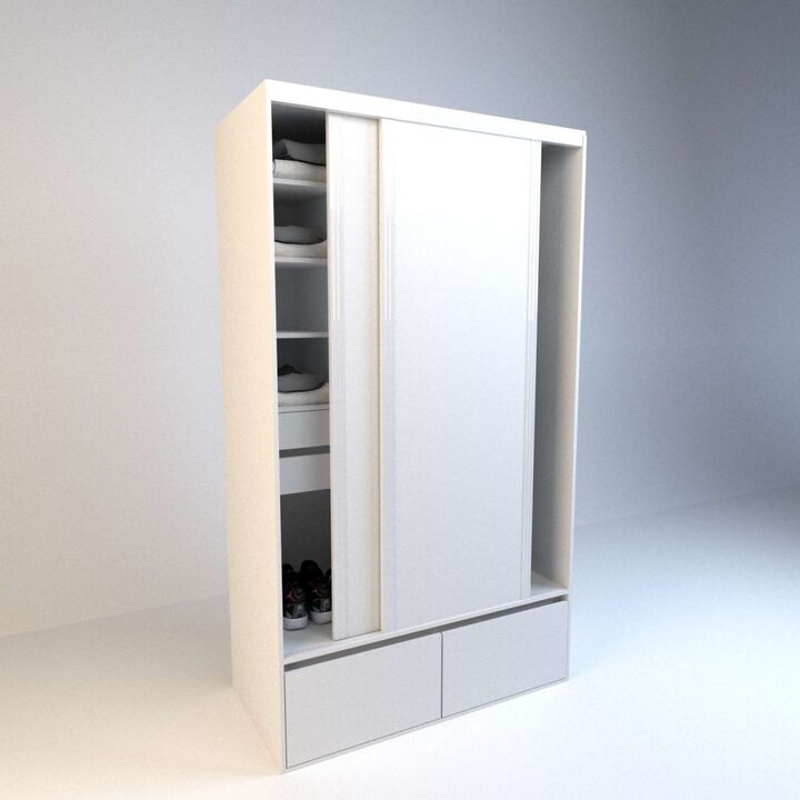 Unicos con perfiles de alumino al tono de las puertas Interior y puerta del mismo color Cantidad de puertas: 2 Cantidad de cajones Interiores: 2 Cantidad de estantes: 7 Interior boxes Correderas metálicas Sistema para puertas corredizas suaves Interior cajones revestidos IMPORTANTE Los muebles salen...