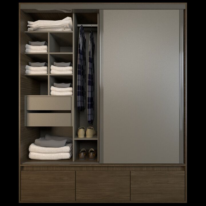 Placard Corredizo 1,80 2 Cajones 3 Zapateros Nogal L. Gris C. Tables