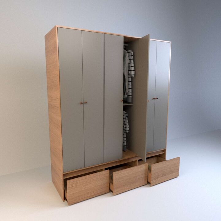 Placard de Abrir 1,8m 6 Puertas 4 Cajones 3 Zapateros Olmo F. Gris C. Tables