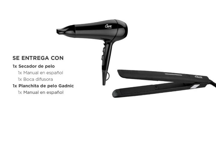 Especificaciones Planchita para el Pelo Gadnic P1001 30W Voltaje: 220v Potencia: 30w Recubrimiento de placas: Cerámico Función bloqueo: Sí Secador de Pelo Gadnic Care S2100 PRO Potencia: 1800 - 2100 [W] Voltaje: 220-240 [V] Largo del cable: 2 [mts] Tecnología: Cerámica / Ión Negativo Motor: Corrient...
