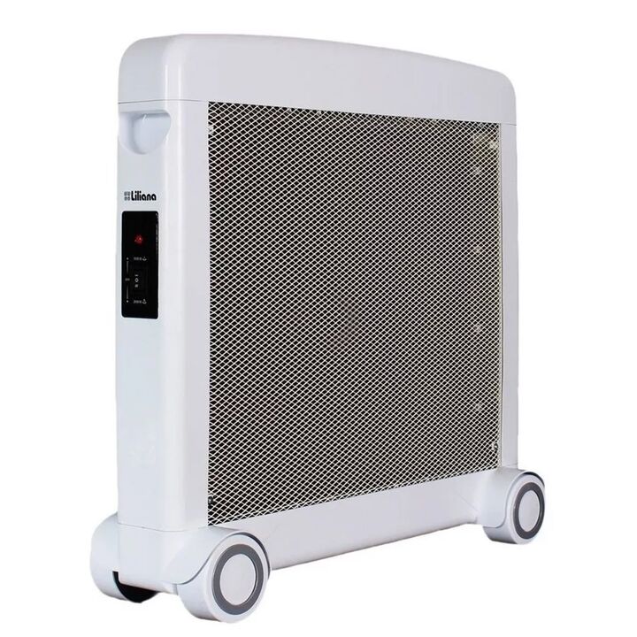 Características del producto - Panel de Mica totalmente ecológico. - Frente mallado. - Luz indicadora de encendido. - Corte de seguridad por sobrecalentamiento y por caída. - Convección natural. - Potencia: 1000|2000 watts. - Color: Blanco. - Alto: 63,3 cm - Ancho: 63,6 cm - Profundidad: 10,2 cm GAR...