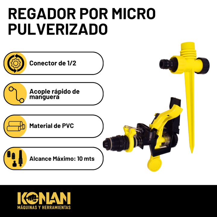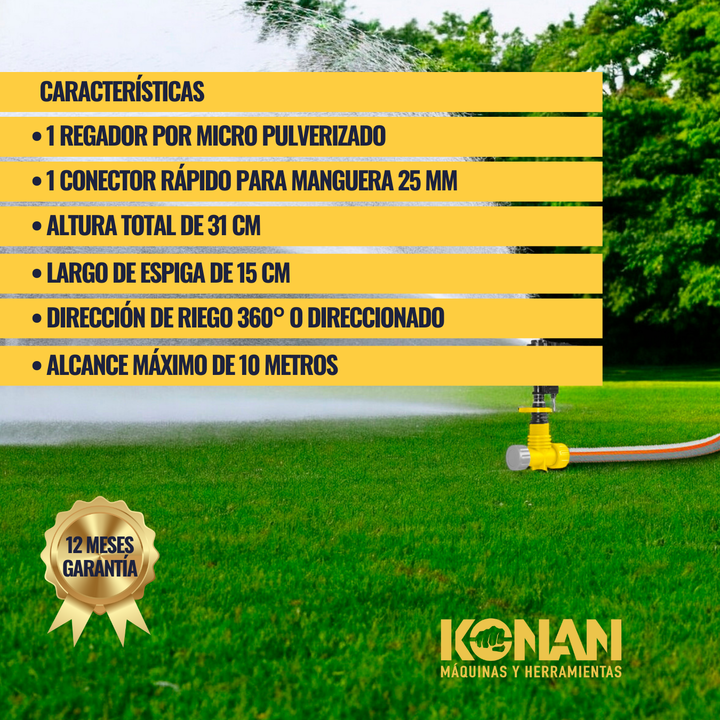 El regador por micro pulverizado Konan Krri es el aliado perfecto para mantener tus plantas y jardines siempre hidratados. Con su tecnología de micro pulverización, este regador garantiza una distribución de 360° o direccionado en un sentido, asegurando un riego eficiente. Su diseño ergonómico y lig...
