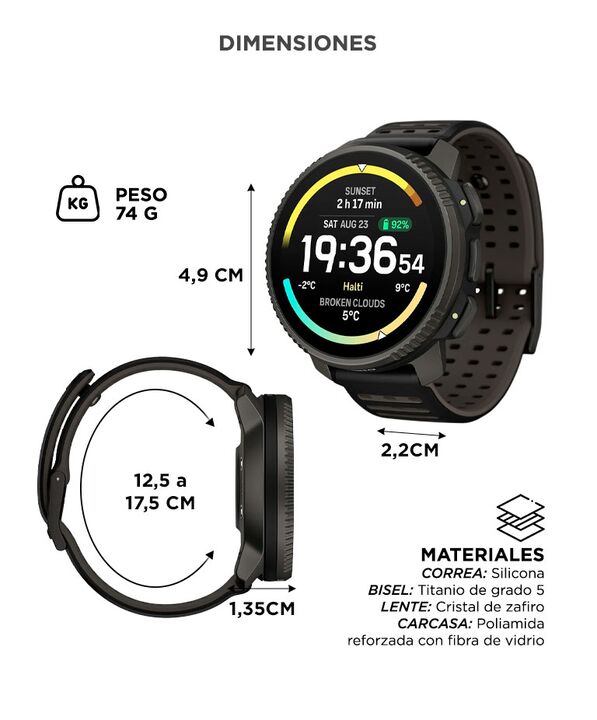 Autonomía extrema para expediciones prolongadas: El Reloj SUUNTO Vertical 2 Titanium Black ofrece hasta 65 horas en GNSS multibanda y hasta 250 horas en modo ahorro. Ideal para ultratrail, trekking y travesías de varios días sin depender de carga constante. Precisión GPS profesional multibanda: Inco...