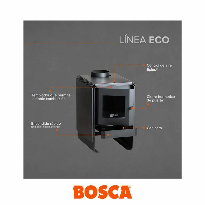 Simpleza y funcionalidadLa Eco 360 es un modelo ideal para entregar calidez y bienestar a casas de un piso de 150 m2 aproximadamente. Est hecha completamente de acero pesa 596 kg y cuenta con recubrimiento de placas de vermiculita en sus laterales y al interior de la caja de fuego logrando una mayor...