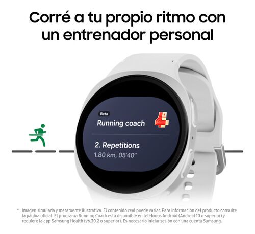 Pantalla: Super AMOLED de 1.34 pulgadas con una resolución de 438 x 438 píxeles. Tiene un brillo máximo de hasta 3,000 nits, lo que lo hace muy fácil de leer, incluso bajo la luz solar directa. Procesador: Chip Exynos W1000 de 3 nm. Memoria y Almacenamiento: Viene con 2GB de RAM y 32GB de almacenami...