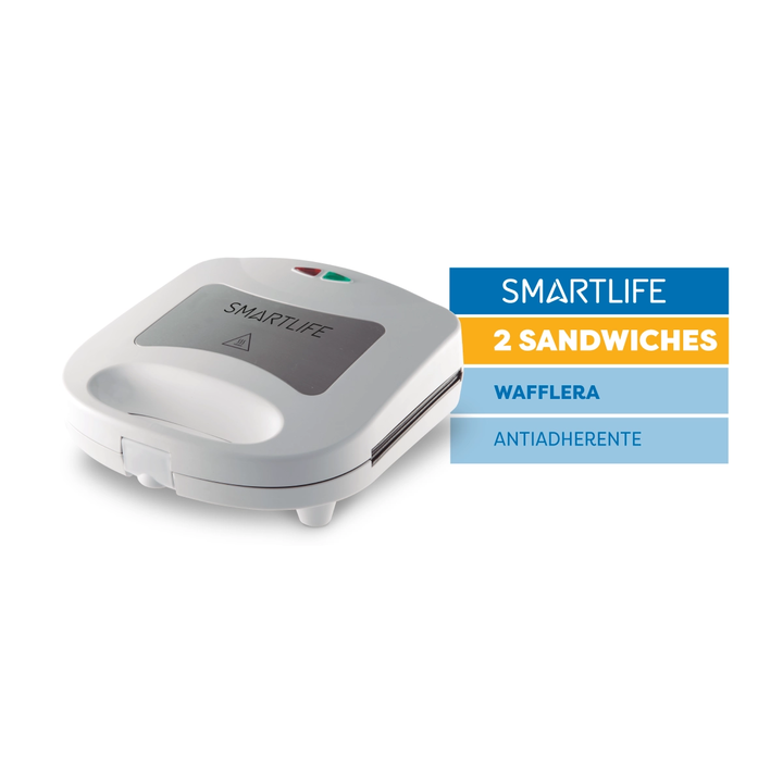 SMARTLIFE SANDWICHERA Y WAFFLERA 2 EN 1 PLACAS REMOVIBLES E INTERCAMBIABLES La sandwichera y waflera eléctrica 2 en 1 de Smartlife permite realizar variedad de preparaciones dulces o saladas cambiando facilmente su placa antiadherente a la indicada para la receta. PLACAS ANTIADHERENTES Además de est...