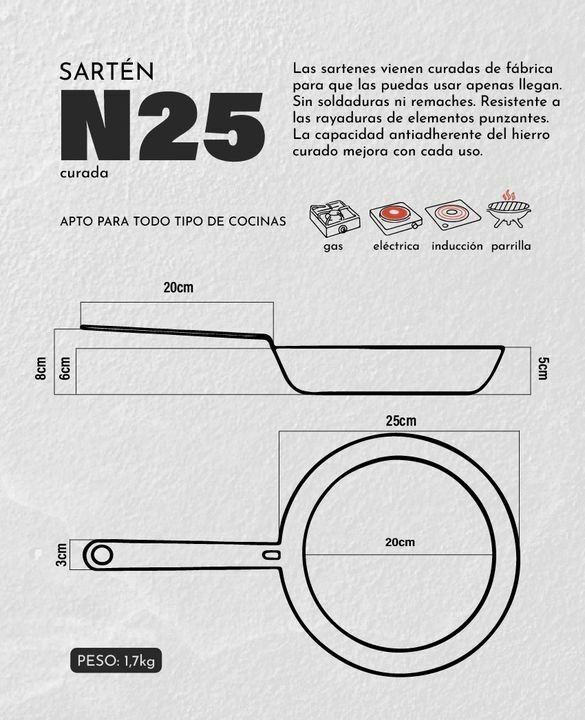 Como el hierro fundido pero mejor. Nuestra sarten de acero al carbono mas vendida ahora viene CURADA para que una vez que te llegue la laves y empieces a usar. -100% de hierro -Fabricada en Argentina -Control superior de temperatura -Naturalmente antiadherente -Compatible con cocinas a gas electrica...
