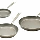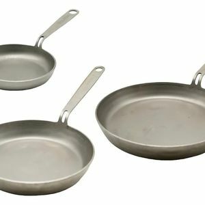 Bateria de sartenes de hierro Kankay. Incluye 3 sartenes de hierro de diametro N30 +N25 + N20. Estas nuevas sartenes son 100% de hierro laminado en frio fabricadas en una sola pieza de 3mm de espesor sin soldaduras ni remaches. El proceso de laminado en frio se lleva en condiciones cercanas a la tem...