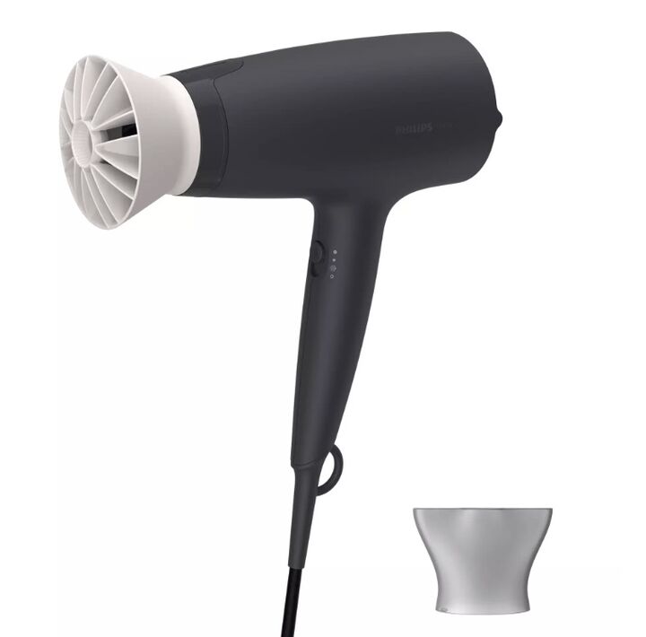 -Tecnología ThermoProtect: Mezcla aire tibio y frío para bajar la temperatura en 10 °C sin reducir el flujo de aire, cuidando así el cabello mientras lo seca rápidamente.