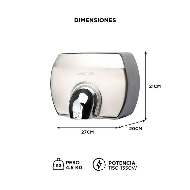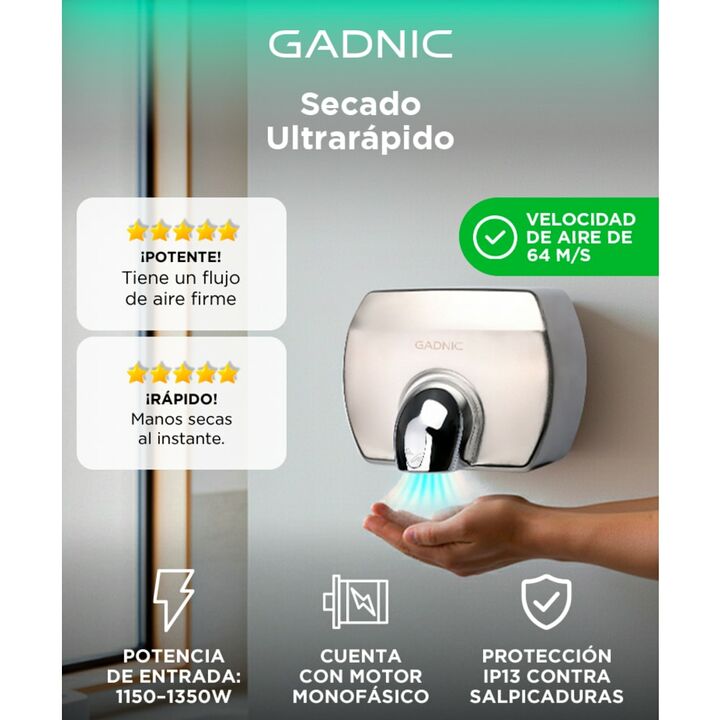 Gadnic presenta el nuevo secamanos eléctrico con sensores Descubrí la eficiencia y la higiene en cada uso con nuestro secamanos automático de última generación. Diseñado para ofrecer un secado rápido y sin contacto, este dispositivo es ideal para cualquier entorno que priorice la limpieza y el confo...