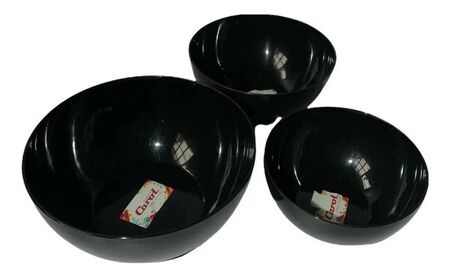 Set de 3 bowls tipo ensaladeras de plastico irrompible. Medidas 17 cm - 20 cm - 23 cm aprox. Aptos Freezer lavavajillas y microondas.