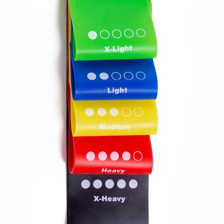 Set de 5 bandas de resistencia. Incluye: Bolsa de traslado. 1x Banda X-Light de 0.9-1.8kg de resistencia. 1x Banda Light de 2.7-3.6kg de resistencia. 1x Banda Medium de 4.5-5.4kg de resistencia. 1x Banda Heavy de 6.8-9kg de resistencia. 1x Banda Extra Heavy de 6.8-13.6kg de resistencia. Material: La...