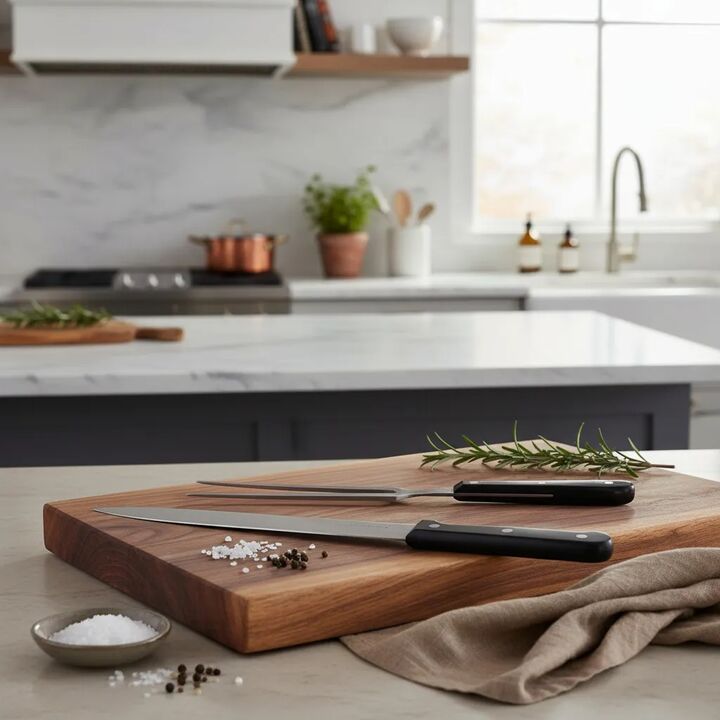 -34 x 4,1 x 7,3 cm Juego de cuchilla y tenedor en caja de madera.