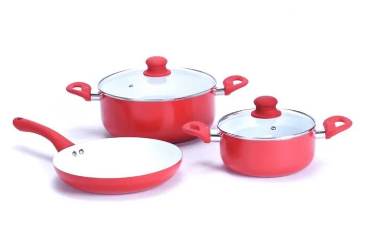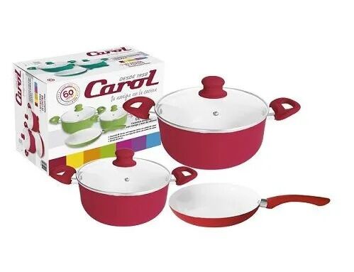 Set de bateria 5 piezas cacerola 18 cm cacerola 24 cm sarten 24 cm con caja color