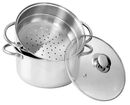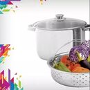 DescripcionCacerola con Vaporiera CarolAcero InoxidableDiametro 22cm.Altura 12cm.Capacidad 35l.Tapa de vidrio.