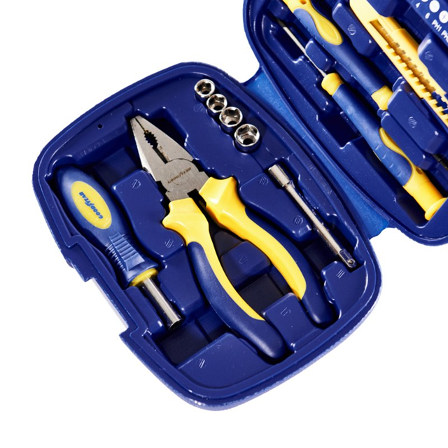 El Set de Herramientas de 21 Piezas Good Year GY-HTK-5021 es todo lo que necesitas para afrontar tareas de reparación o mantenimiento en casa o en el taller. Con herramientas esenciales como un martillo de acero, alicate combinado, destornillador y tubos de diferentes tamaños, tendrás todo a mano pa...