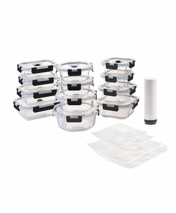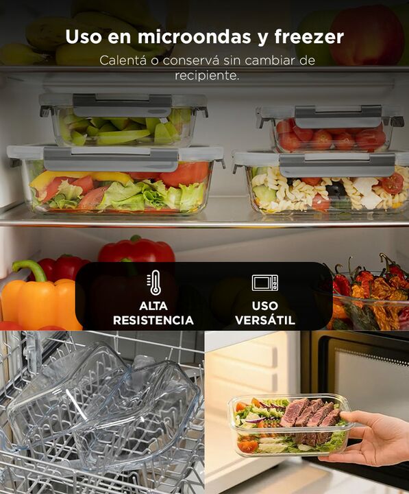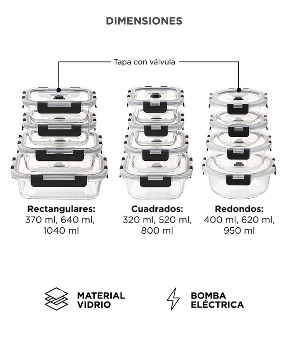Conservación al vacío para mayor frescura: El set GADNIC FRASKI10 permite extraer el aire de los recipientes y bolsas, ayudando a prolongar la duración de los alimentos. Recipientes de vidrio resistentes al uso diario: Fabricados en vidrio de borosilicato, soportan altas y bajas temperaturas sin afe...