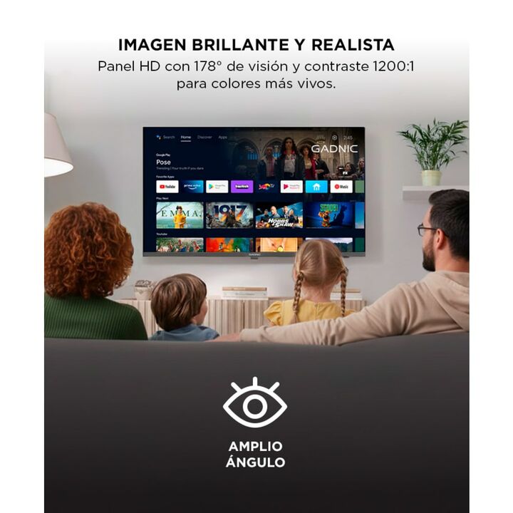Entretenimiento inteligente en alta definición El Smart TV Gadnic de 32 pulgadas combina tecnología avanzada con un diseño moderno y compacto. Su pantalla HD de panel LG ofrece imágenes claras y vibrantes, ideales para disfrutar películas, series o videojuegos con excelente nitidez. Rendimiento flui...