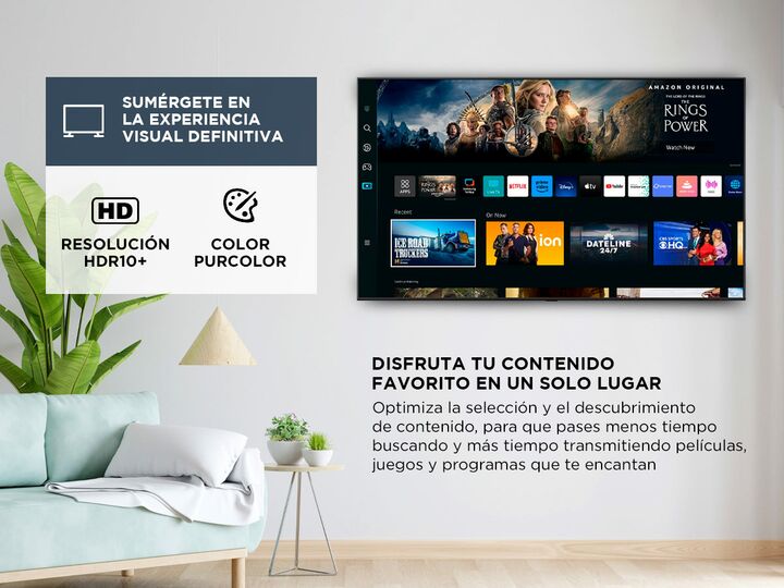 Sumérgete en la experiencia visual definitiva con el Smart TV Samsung de 55 pulgadas 4K. Colores vibrantes y detalles excepcionales hacen que tus películas y series cobren vida. Especificaciones Tamaño de pantalla: 55” Resolución: 3840 x 2160 Frecuencia de actualización: 60 Hz Motor de imágenes: Pro...