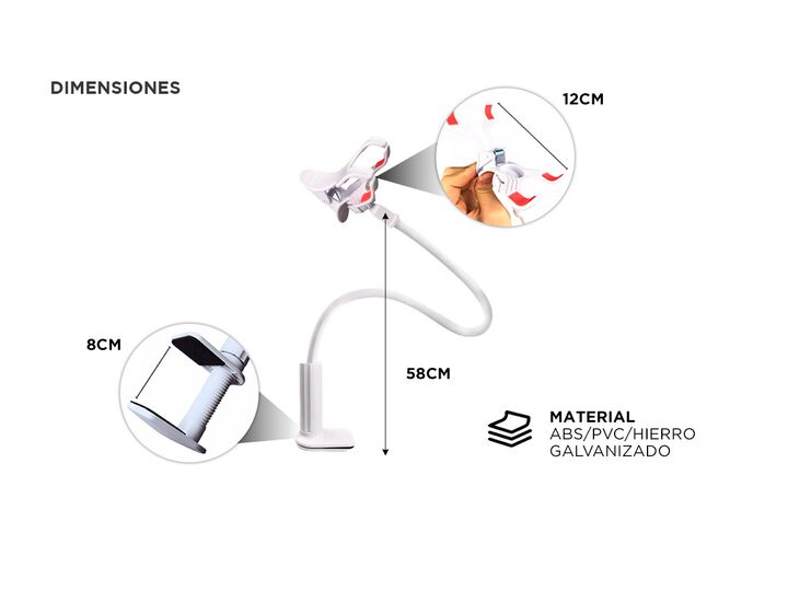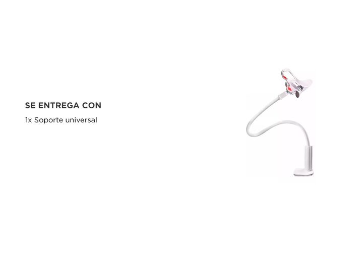 El Soporte Universal es la solución perfecta para mantener tus dispositivos a mano y en la posición ideal en todo momento. Gracias a su varilla flexible de 58 cm, puedes ajustar fácilmente la posición del soporte para un uso más conveniente y ergonómico. Este soporte es apto para varias superficies,...
