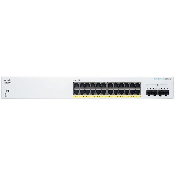 Switch Cisco Business CBS220-24P-4G 24 Puertos PoE + 4 SFP Switch Cisco Business CBS220-24P-4G 24 Puertos PoE + 4 SFP Cisco Detalles Especificaciones Técnicas - Acl:Límite de caída o velocidad basado en MAC de origen y destino, ID de VLAN o dirección IP, protocolo, puerto, precedencia de punto de có...