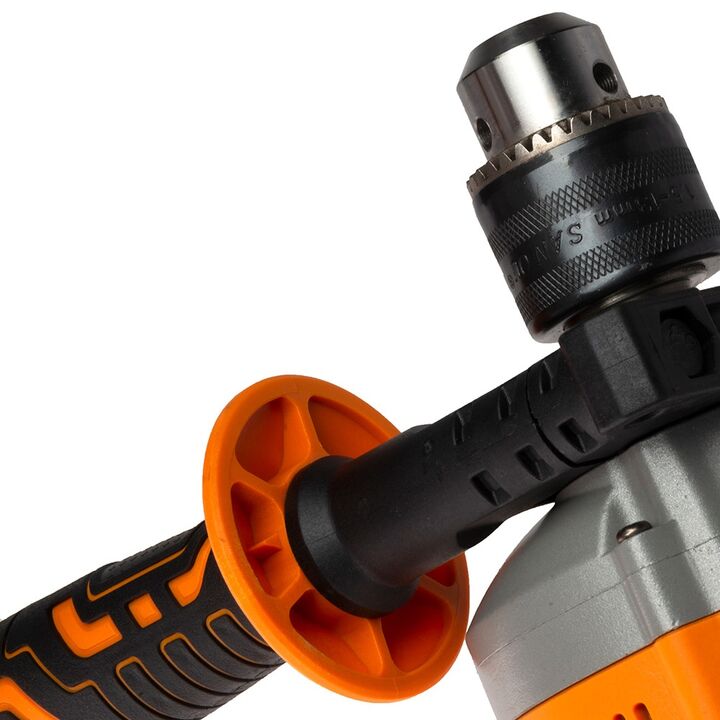 Velocidad variable y reversible. Empuñadura lateral en soft grip y tope de profundidad. Ideal para aplicaciones en madera, acero y mamposterías. INCLUYE Mango lateral Llave de ajuste