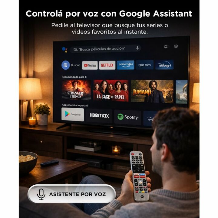 Entretenimiento inteligente en gran formato El televisor Motorola MT5510 cuenta con una pantalla de 55 pulgadas y resolucion 4K UHD que brinda una experiencia visual envolvente. Su sistema Android Tv permite acceder a plataformas de streaming aplicaciones y juegos desde un solo lugar. Ofrece navegac...