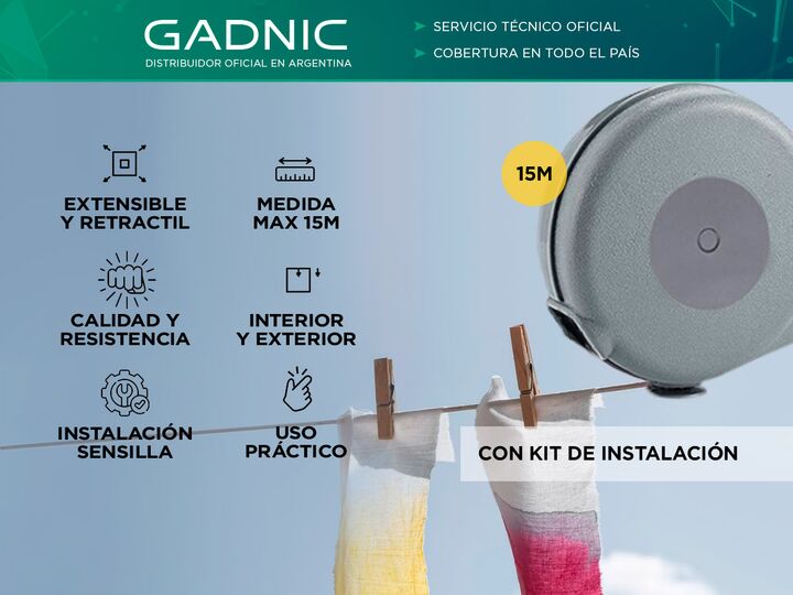 ¡Nuevo Tender Extensible Gadnic de 15 mts! Con capacidad de 15 metros para colgar ropa, este tender de pared te ofrece una solución práctica y eficiente para secar tus prendas. Su diseño extensible se ajusta a tus necesidades, permitiéndote recogerlo cuando tienes poca ropa y desplegarlo para grande...