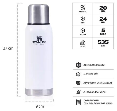 Termo STANLEY Adventure 739ml Polar Para los amantes del aire libre. La serie Adventure de Stanley es conocida por su construccion legendaria y resistente que proporciona la durabilidad necesaria para soportar las condiciones extremas del campamento. Este termo Stanley es la eleccion perfecta para a...
