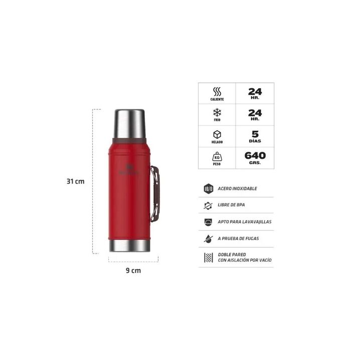 STANLEY TERMO CLASICO 950ML El icnico termo Stanley de 950 ml ha marcado las aventuras al aire libre durante generaciones. Obtn este clsico y disfruta de una vida de bebidas calientes y recuerdos compartidos. La construccin robusta y el aislamiento al vaco de esta botella significa que puede manejar...