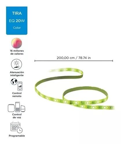 El kit de inicio de la tira LED de 2 metros WiZ te brinda todo lo necesario para obtener una luz inteligente de color brillante. Corta la tira flexible a medida para agregar iluminacin lineal indirecta a cualquier espacio. salo con la aplicacin WiZ o con la voz para atenuar las luces e iluminar o us...