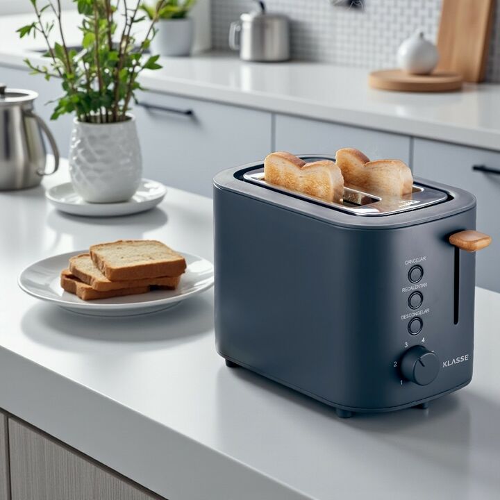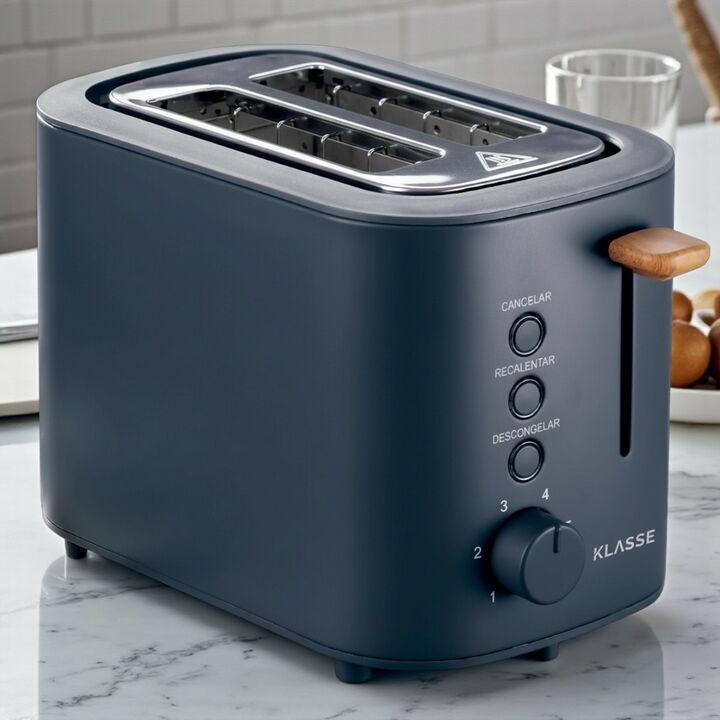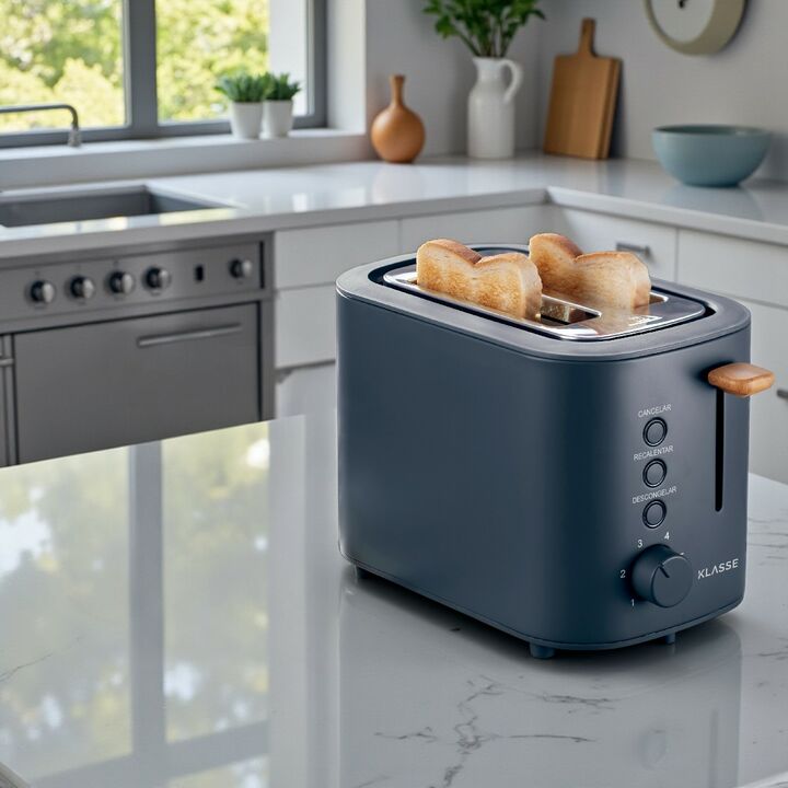 Disfrutá cada mañana de tostadas perfectas, crocantes y doradas exactamente a tu gusto. La tostadora KLASSE Azul & Wood Pattern combina funcionalidad, diseño y estilo en una pieza pensada para destacarse en cualquier cocina. Su exclusivo acabado en color azul con detalles tipo madera (wood pattern) ...