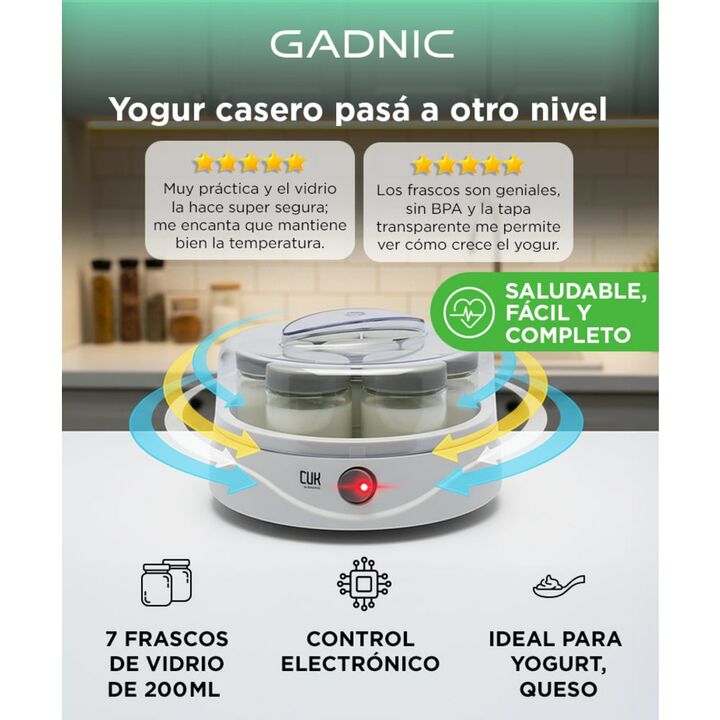 Descubrí la comodidad y los beneficios de preparar tus propios alimentos fermentados con la Yogurtera Gadnic. Diseñada para hacer yogur casero de manera sencilla y eficiente, esta innovadora yogurtera va más allá de lo convencional, ofreciéndote la posibilidad de experimentar con una variedad de rec...