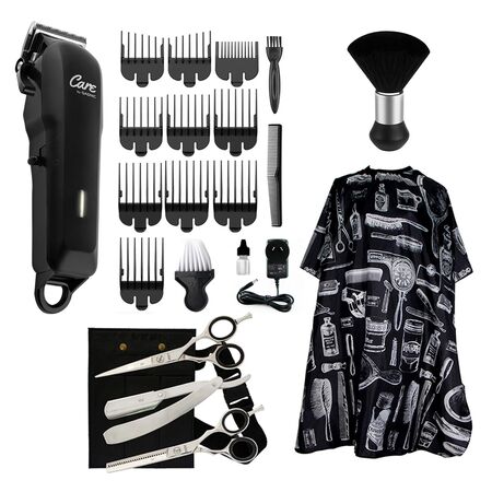 23% OFFSet Peluquería Tijera de Pulir Navaja + Capa de peluquería + Brocha + Cortadora de Pelo Recargable-Bidcom-