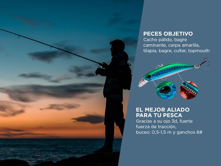 ¡Innovador Señuelo de pesca Linnhue! Amantes de la pesca, les presentamos un producto que les encantará. Este cebo artificial ha sido diseñado para imitar a la perfección los movimientos de un pez, atrayendo así a los peces depredadores y aumentando las posibilidades de éxito en su pesca. El cebo ar...