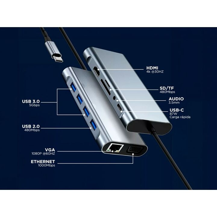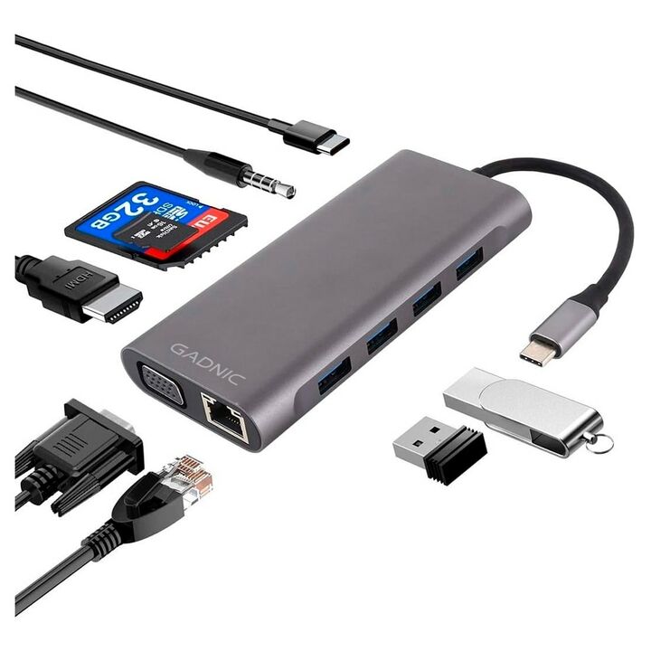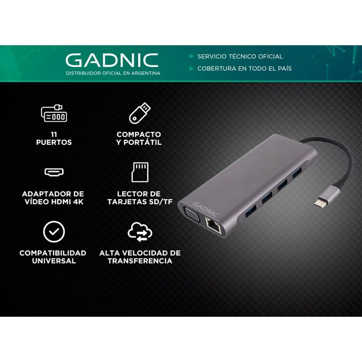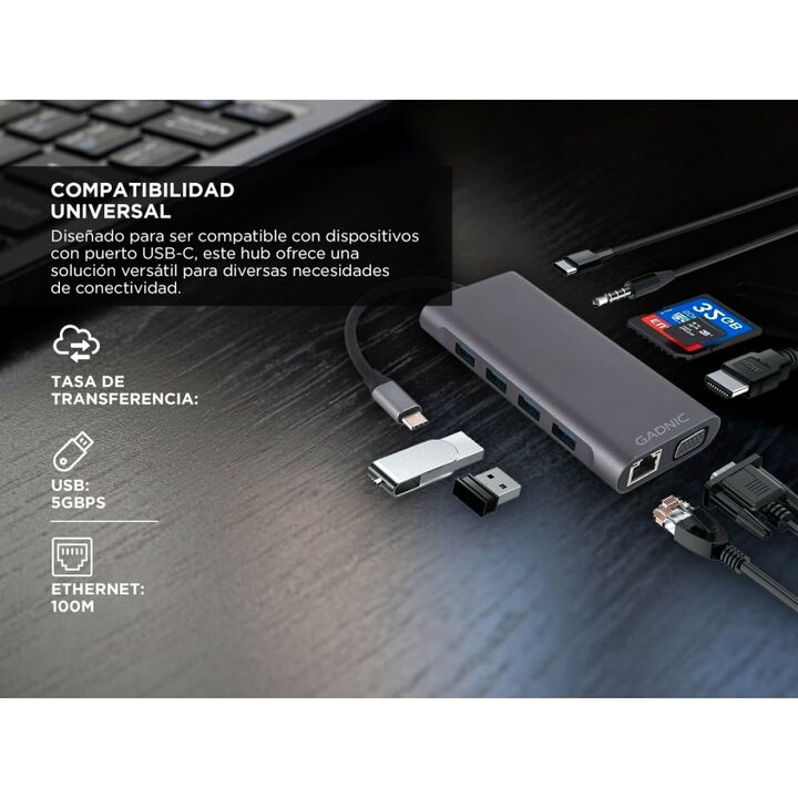 Gadnic presenta el nuevo Adaptador USB-C 11 puertos en 1: 11 en 1: Este adaptador cuenta con 11 puertos diferentes, incluyendo USB-C, HDMI, lector de tarjetas SD/TF, Ethernet, y más, proporcionando una amplia gama de opciones de conectividad. Compatibilidad Universal: Diseñado para ser compatible co...