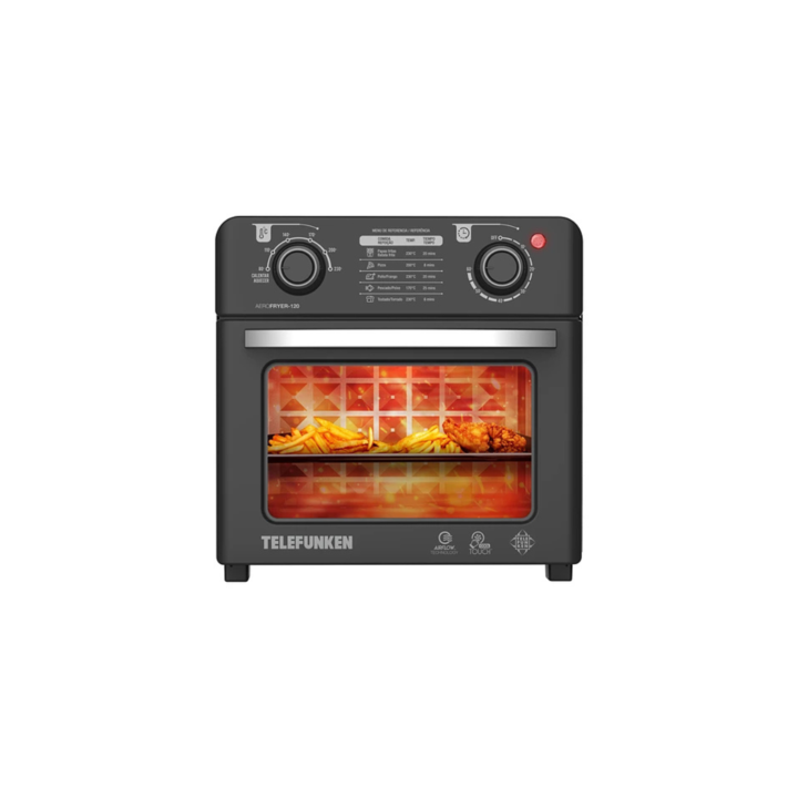Descripción Freidora sin aceite por aire caliente TELEFUNKEN AeroFryer 120 - Control frontal, práctico, 12L de capacidad y potencia 1500-1750W con 2 posiciones de cocción, 3 bandejas incluidas y 3 funciones de cocción: freír, tostar y calentar. CARACTERÍSTICAS Capacidad: 12 Lts 3 funciones: Freír, t...