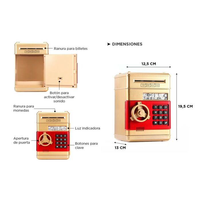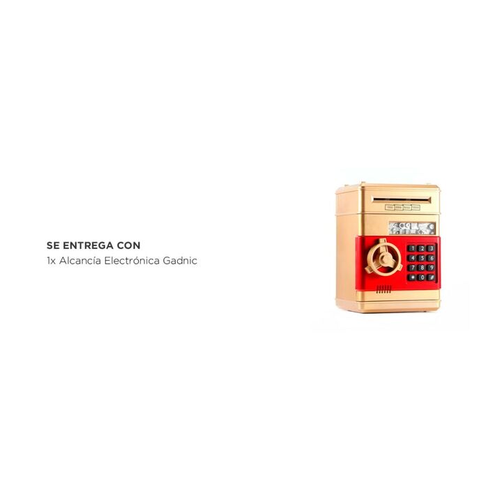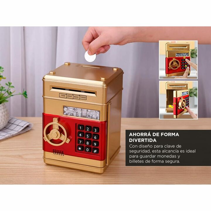 ¡Introducimos la alcancía electrónica perfecta para ahorrar de manera divertida, segura y protegida! Con su diseño de caja fuerte y clave de seguridad, esta alcancía electrónica es la solución ideal para guardar tus monedas y efectivo con tranquilidad. Olvídate de las alcancías convencionales que pu...