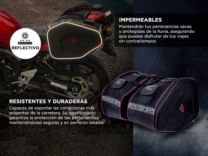 ¡Descubre el Juego de Alforjas Impermeables Rígidas Menat, el complemento perfecto para tus aventuras en moto! Nuestras alforjas impermeables ofrecen la combinación ideal de estilo, durabilidad y funcionalidad. Diseñadas pensando en los motociclistas apasionados, estas alforjas te brindarán la confi...