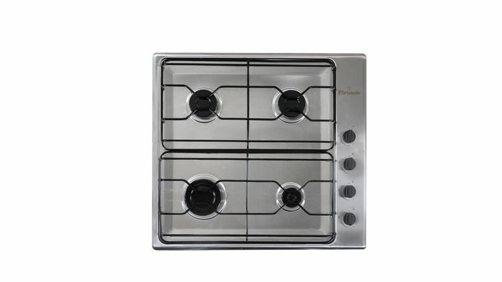 Anafe a gas de Acero Inoxidable de cuatro hornallasEncendido a una sola manoEncendido Electrico incorporado al quemador al presionar y girar la perilla se enciende el fuego automticamente.Rejilla de alambre enlozadoDe alta durabilidad y Valvulas de seguridad en cada hornalla.Eficiencia energtica Cla...