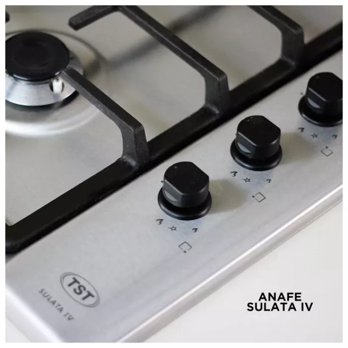 Anafe a Gas TST Sulata 4 HornallasCon encendido automtico y 4 quemadores.Su superficie es de acero inoxidable esmerilado.Control a perilla.Su eficiencia energtica es A.Con Valvula de seguridad para evitar posibles accidentes.Indispensable para tu cocina.Industria Nacional.Que tus preparaciones sean ...