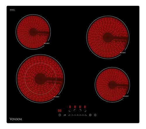 Anafe Eléctrico Vitrocerámica Empotrable de 60Cm Vondom C6465B Negro Nuestro anafe de vitrocerámica está diseñado para ofrecerte una experiencia gastronómica superior. Con su elegante diseño y tecnología avanzada, este anafe se convierte en el aliado perfecto para tus preparaciones diarias. Transfor...